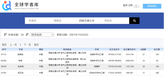 Recently, the website of Globalauthorid listed the "Top 100,000 scientists in the world". According to the statistics, 87 people were selected from the College of Electrical Engineering of universities in China. Among them, four professors from the School of Electrical Engin...