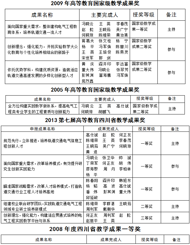 历年教学成果奖