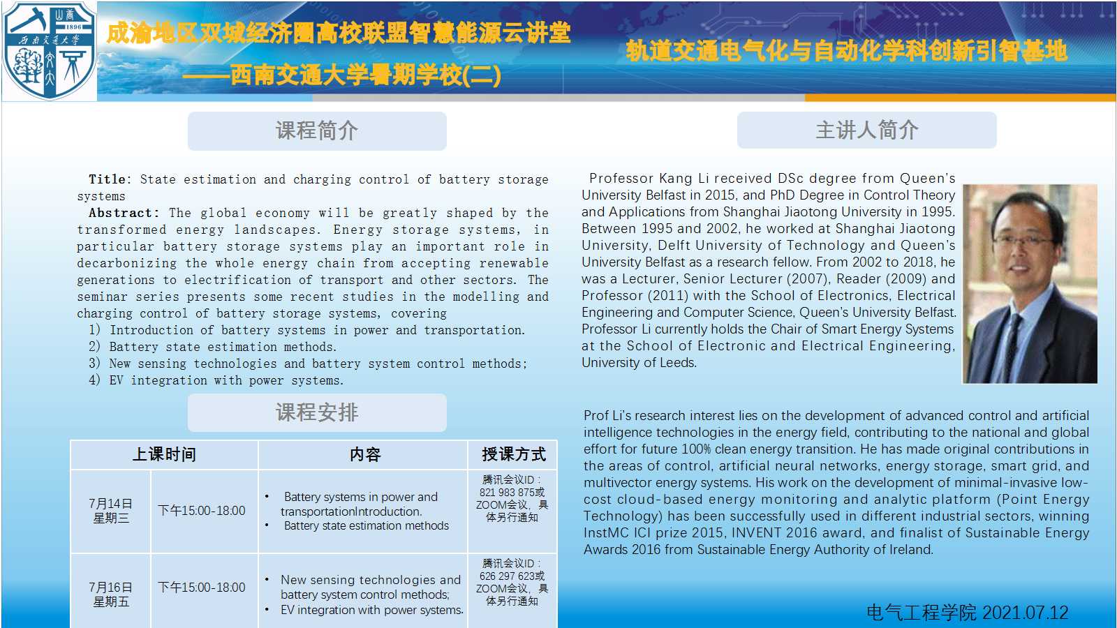 成渝地区双城经济圈高校联盟智慧能源云讲堂 ——伟德官方网站暑期公司(二)相关简介如下: