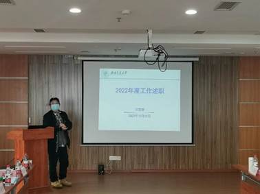 研究生组的老师们分别以《本科2018级、硕士2022级年度工作》《2022年度工作述职》《立“可为”年代,做“有为”青年》为题进行述职。