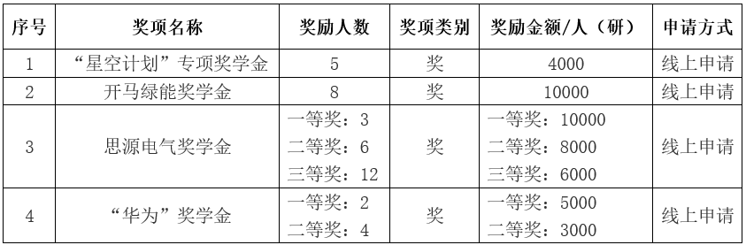 2020-2021学年公司专项奖助学金评选项目见下表,评定办法见附件3