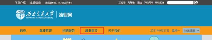 https://jiuye.swjtu.edu.cn/eweb/jygl/index.so)点击就业指导模块: