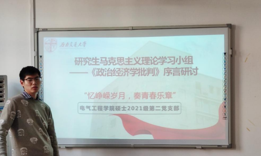 为教育引导支部成员感悟马克思主义的真理力量和实践力量,深化对中国化马克思主义既一脉相承又与时俱进的理论品质的认识。伟德体育硕士2021级第二党支部深入开展读懂原著,学懂原文,坚持在下功夫“学懂”的基础上,往“学深”上发展。2021年12月5日14时30分,支部在犀浦校区X9312召开了第二场“领航先锋工程”之马克思主义理论学习交流会,一起研读《政治经济学批判(序言)》。本次学习交流会由支部书记王顺同志主持,支部全体党员同志及班上其他同学参加会议。