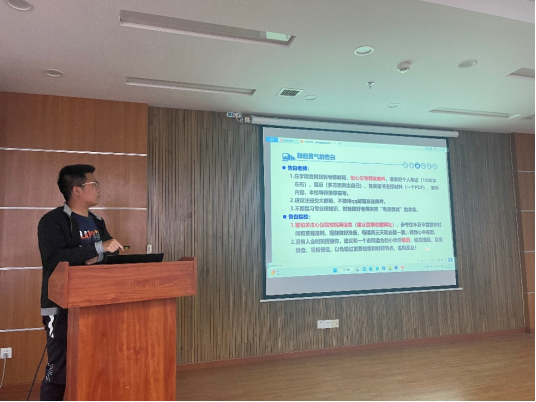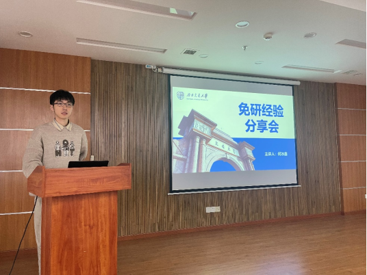 其次,常昊鑫学长将免研过程比作从暗恋到约会,以诙谐幽默的方式为同学们分享了免研西安交大的相关经验,并十分细心地提到免研过程中的一些细节,从着装到联系导师,都需要认真准备。他的分享让同学们在轻松愉悦的氛围中受益匪浅。