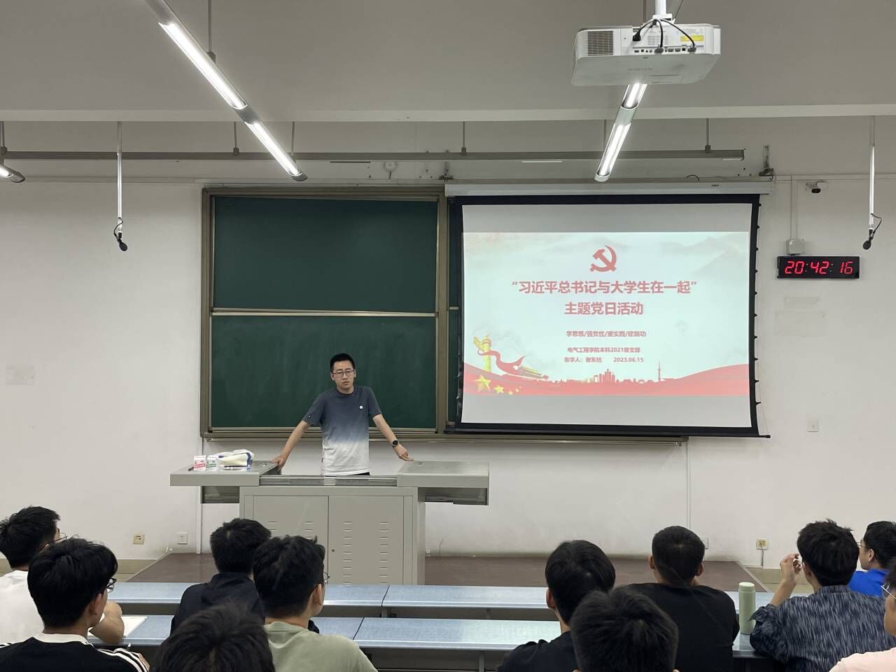 本次党日活动主要分为三个环节:一是深刻认识开展本次主题党日活动的意义;二是重温习近平总书记关于教育重要论述的主要内容,特别是对青年成长的期待和要求;三是神舟十六号载人飞船发射时事学习,领悟一代代航天人的使命担当。