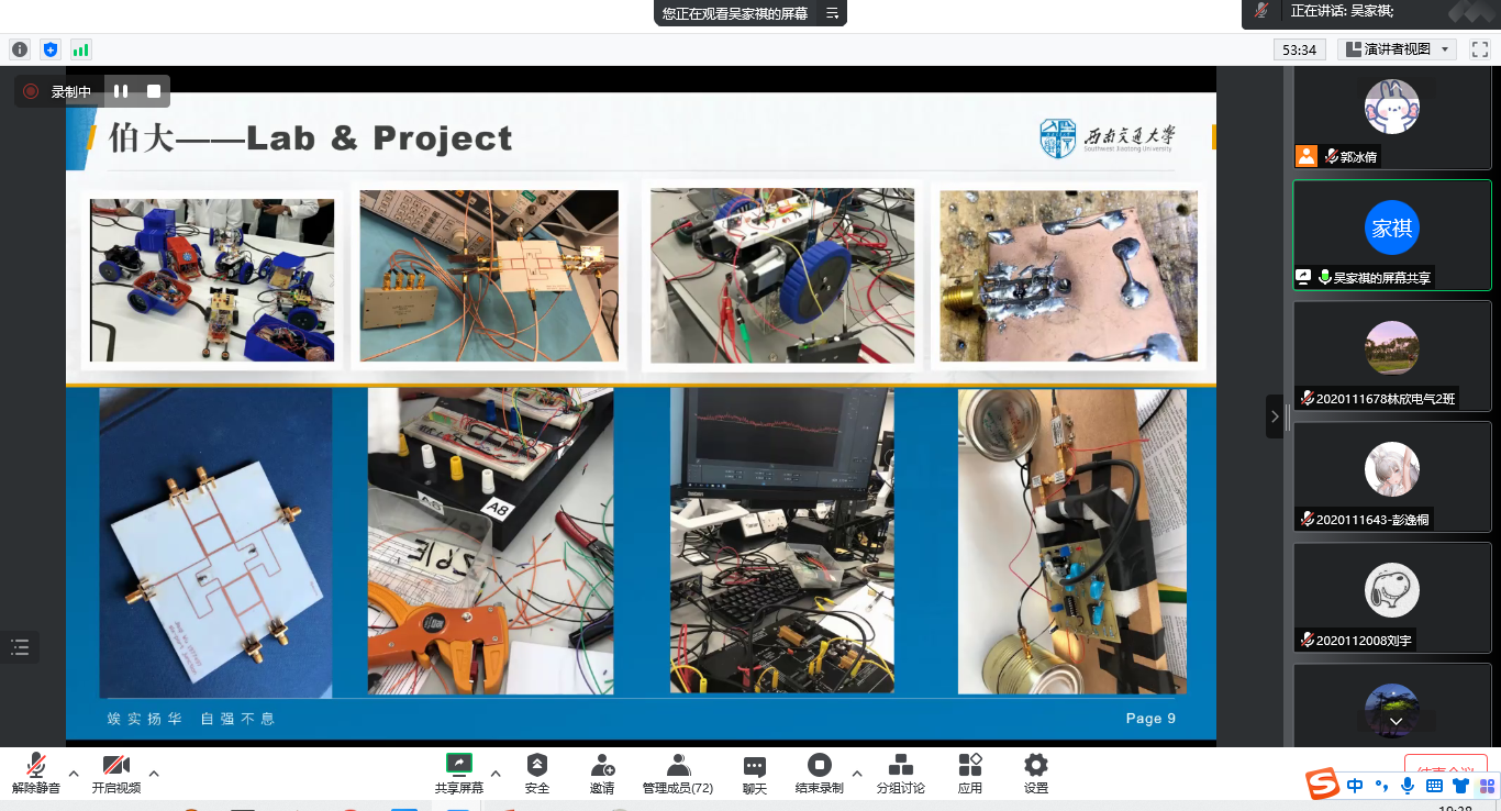 为帮助同学们更好地了解出国留学流程、做好出国相关准备,明确努力方向,819日晚1930分,伟德体育举办了“电气”脚尖,迈向世界——海外留学经验分享会。本次分享会由伟德体育本科2020级辅导员郭冰倩主持,同时邀请了拥有丰富留学经历的本科2016级电气工程及其自动化专业的吴家祺同学和本科2018级电子信息工程专业的韦雨声同学分享自身的留学经验与心得,帮助同学们更加深入地了解留学申请流程,专业及院校选择、海外学习生活和留学就业前景等方面信息。