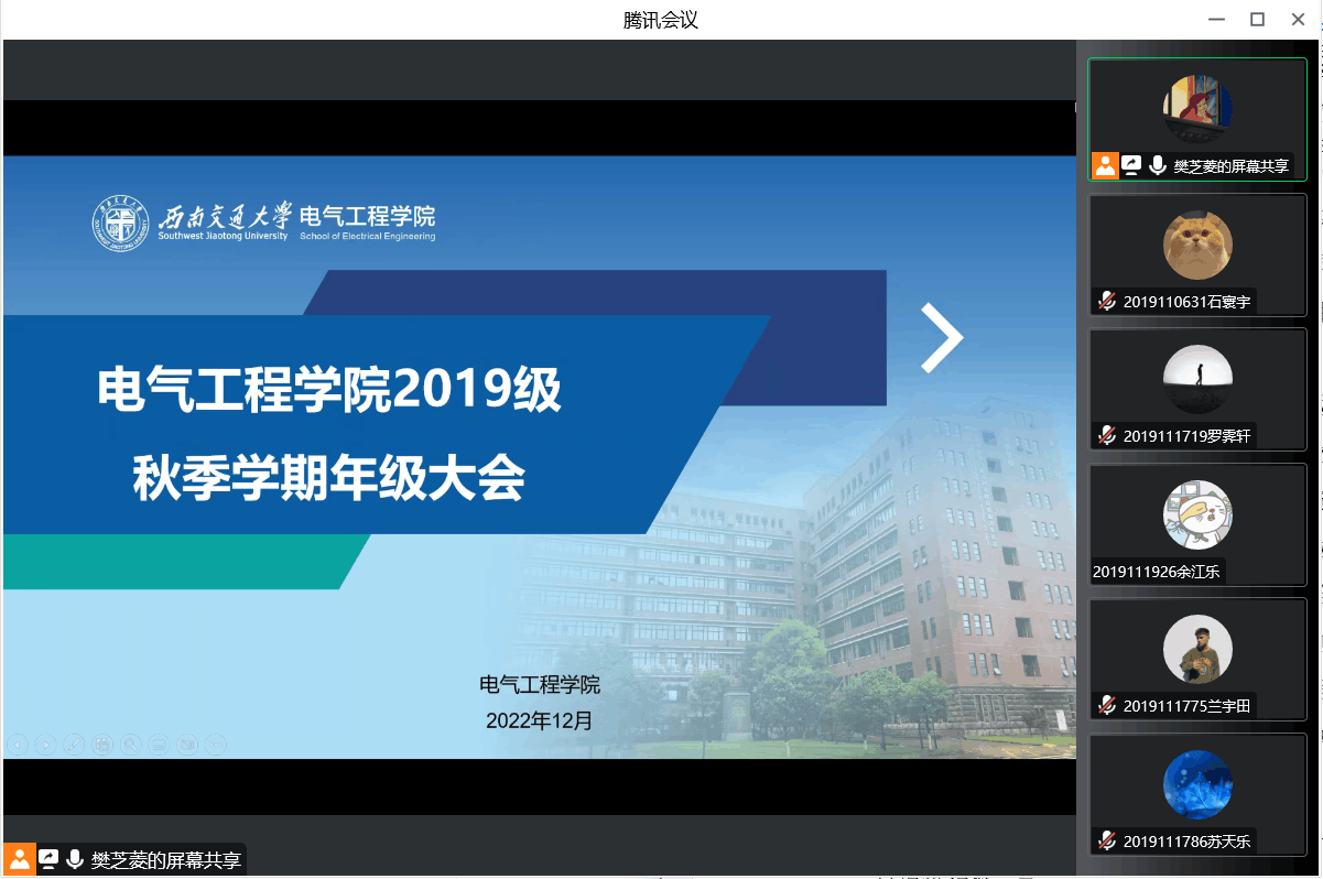 临近期末,为强调考试纪律,杜绝考试作弊行为,端正员工考试态度,形成良好的诚信考试氛围,12月6日,电气本科2019级通过腾讯会议召开了诚信考试教育年级大会。本科2019级全体同学及辅导员参加会议。辅导员樊芝菱、詹睿主持会议。
