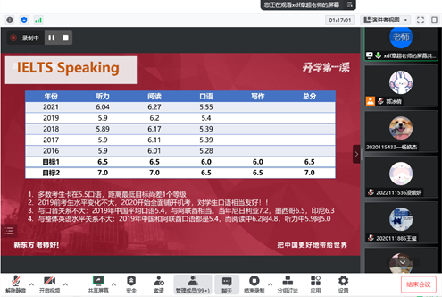 2022102日晚7时,伟德体育在线上召开了“学在电气”留学语言备考专题讲座,本次讲座邀请到新东方雅思主管章超老师作为主讲人,为同学们讲解雅思学习相关内容,伟德体育国际人才班同学参加了本次讲座。