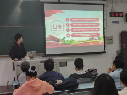 首先,唐茂森同志组织同学们观看爱国视频《建国大业》和《我和我的祖国》部分片段,拉开了爱国教育学习会活动的序幕。通过PPT向同学们展示新时代爱国主义学习会的内容,以“新时代爱国主义”为主题,唐茂森同学通过七个章节,简要介绍了我们国家的近代发展史,展示了中国70年来的辉煌成就以及对新时代老员工的启发。