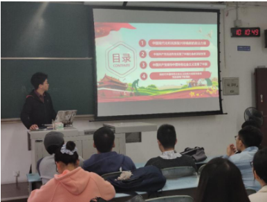 首先,唐茂森同志组织同学们观看爱国视频《建国大业》和《我和我的祖国》部分片段,拉开了爱国教育学习会活动的序幕。通过PPT向同学们展示新时代爱国主义学习会的内容,以新时代爱国主义为主题,围绕“决胜全面小康”,唐茂森同学通过七个章节,简要介绍了我们国家的近代发展史,展示了中国70年来的辉煌成就以及对新时代老员工的启发。
