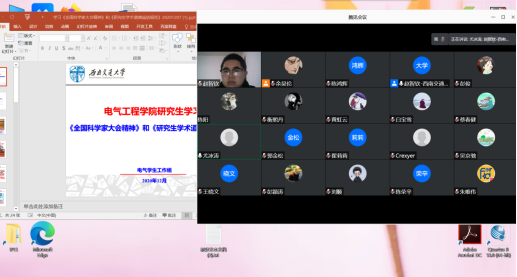 硕士研究生2020级通过线上和线下开展本次活动,12月9日中午在电气馆X10832,辅导员谭笑组织班级班长、党支书等主要班委共同学习《大会精神》和《研究生学术道德诚信规范》,并强调班级负责人要组织好班级线上学习。大会首先学习了习近平总书记的讲话,习近平总书记强调“我国经济社会发展和民生改善比过去任何时候都更加需要科学技术解决方案,都更加需要增强创新这个第一动力。”结合习近平总书记重要讲话,重点学习了陈能宽、吴自良、姚桐斌三位获得“两弹一星”功勋奖章的交大科学家故事,学习《研究生学术道德规范》,通过前辈们的感人事迹和校纪校规,提醒研一新生应严格要求自己,尽早确立研究生学业目标。
