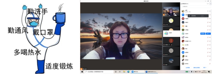 随着秋冬季节的到来,新冠肺炎疫情防控压力陡增,进入11月,成都市内再度出现了本土疫情,防控工作再次敲响了警钟。为引导同学们正确认识疫情,了解疫情,做好防控疫情的准备,11月5日晚19:30,伟德体育硕士2021级10班同学以云见面的方式开展了“疫情防控,战‘疫’有我”主题班会,提醒大家严格重视本次疫情,保护自身的安全。