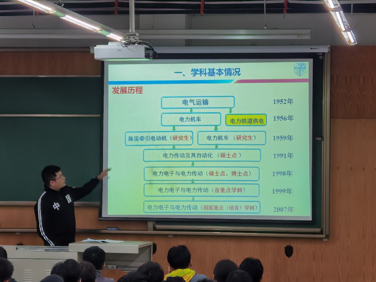 会上,宋文胜老师详细地介绍了“电力电子与传动控制”专业方向的学科发展的发展历程、团队队伍、人才培养、科研平台,并重点介绍了以电力电子为核心的相关课程内容、培养目标以及毕业去向等同学们关心的问题。