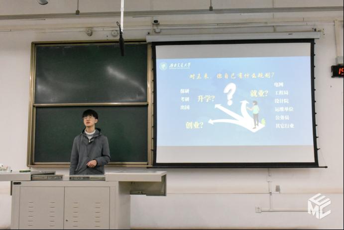 殷子浩首先讲述了他转到电气专业后从零开始到专业排名靠前的过程。他表示,“千里之行始于足下”,同学们一定不要害怕失败和困难。接着,他谈到了同学们在大一时应着重注意的事项。在后续的专业学习和科研以及竞赛上,他也给出了他独到的见解。最后,他希望同学们能够做到“青出于蓝而胜于蓝”,在平凡的老员工活中创造各自的辉煌。