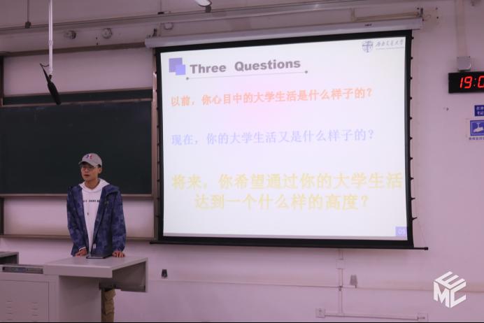 谢懿晗将自己的老员工活总结为求学,选择,方法三个方面。谢懿晗讲道,2018年,他考入峨眉校区,开始了他的求学之路,在风景如画的峨眉山脚下,他第一次见识到了大公司园的模样,在那时,他就下定决心要不负韶华,奋发努力。接着,他就生活方式的选择,职业规划的选择,未来发展的选择做了分享,建议同学们把握人生的每一个重要节点,选择自己喜欢的生活方式。最后,他向同学们介绍了自己学习的方法,要搞好学习,勤奋、思考、总结缺一不可,这样才能厚积薄发,要抓住事情的轻重缓急,才能平衡好学习与员工工作的关系,同时也要注意兴趣爱好的培养,“兴趣是最好的解压剂”。