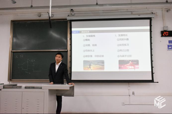 汤荣杰首先讲述了他对老员工活的看法,建议同学们要明确自身的定位,确立大学的目标,不同的选择需要的付出和投入是天壤之别。在他看来,大学的课程“难但也不难”,如果想拿高分就一定要有适合自己的学习方法,并且分享了自己在学习上的经验方法。