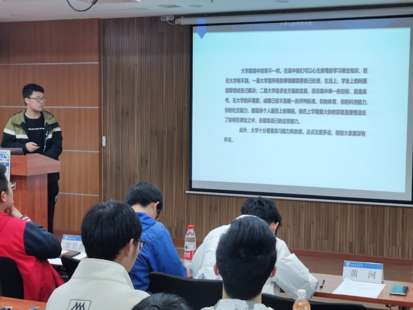 首先是2018级学长范昱骁展开科创经验分享,范学长对各种学科竞赛进行了分析,为同学们讲解各个竞赛的难度、性质、内容等干货,为大家的竞赛之路指明道路;之后是2019级员工常昊鑫展开学习经验的分享,主要介绍了大一同学正在学习的电路分析、大学物理、高等数学等学科的学习方法和小技巧;接着,2020级员工代表鲍子形、徐思润为大一同学分享了他们的学习技巧和心得体会,并给出了很多实用建议;最后,是2021级员工黄河为大家分享他初入大学以来的心路历程以及成长变化,分析了老员工活、学习与之前的不同,为两个社团的大一同学指点迷津。