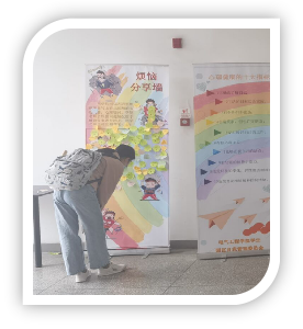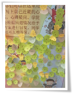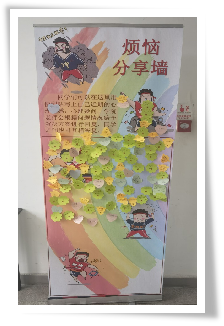 烦恼分享交流环节中,同学们也都纷纷在便利贴上写下自己最近的困惑与不安,粘贴在了烦恼分享墙上。同时,也积极回复其他同学在墙上的留言,为他人的烦恼留下自己的建议,互帮互助,打开心扉,一起健康成长。