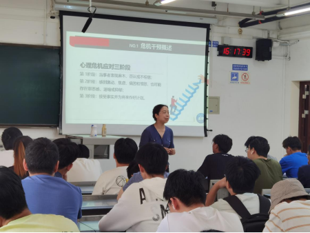 培训伊始,高飞老师从生活中的心理危机干预作为切入,指出人在面对危机时候的一些本能心理学现象,提醒大家要善于管理自身情绪,树立积极向上的生活态度,同时要关注身边同学的心理变化,如果发现身边的同学有自杀倾向,要正确地对这些同学提供帮助