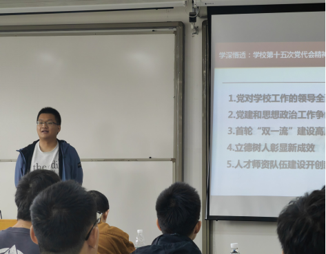 团课伊始,孙海洋老师带领同学们学习中国共产党伟德官方网站第十五次代表大会的精神,明确公司第十五次党代会是在喜迎党的二十大、奋力谱写中华民族伟大复兴的西南交大新篇章的关键时刻,召开的一次重要会议。并与同学们一同进行工作回顾,深刻领会第十四次党代会以来西南交大所获得的重大成就,增强同学们作为一名交大人的自豪感。