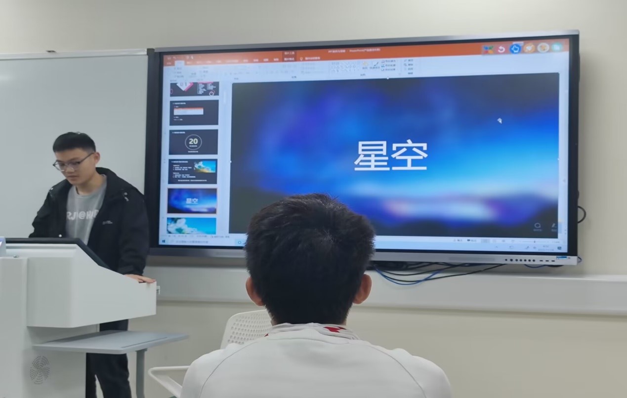 随后,李庞于会长展示了关于PPT的制作技巧,包括增加撤销次数的方法、图片虚化方法、页面尺寸设置等。李庞于会长表示,虚化不仅可以使我们的PPT更加的美观,也会让重点内容更加突出。此外,李庞于会长为同学们推荐了一些提高制作审美的实用网站,分享了部分PPT模板,为同学们的PPT制作带来了极大的便利。