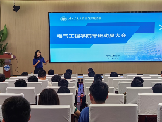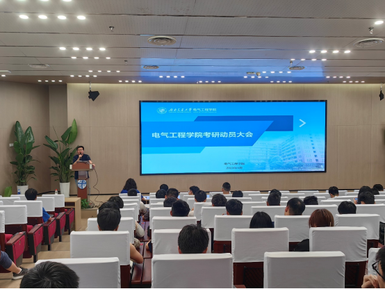 为激励和支持员工积极备战考研,提高考研的成功率和录取率,营造一个积极向上、勇于拼搏的考研氛围,5月28日,电气本科2020级在图书馆一号报告厅召开考研动员年级大会,公司党委副书记谢力出席会议并讲话,年级大会由辅导员关怀、郭冰倩主讲,本科2020级全体员工参加会议。