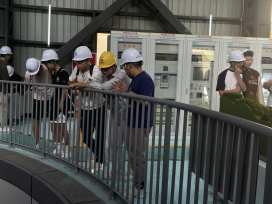 在讲解后,实践队员结合自身的学术科研背景分别与现场工程师进行技术交流。2022级博士班党支部书记刘芸江就“全功率变速恒频抽蓄机组”变流器的设计优化及控制策略同厂务工程师进行探讨,对于如何兼顾高效率、宽调节范围进行技术交流;2021级博士生左运结合自己的研究内容,针对项目中的“变速恒频”功能,表达了自己对该变流器设计的理解和想法,得到了现场工程师的肯定,并进行了深入的探讨;对于水光蓄电站联合运行及智能调度系统,2022级博士研究生罗嘉明表示,“要做到毫秒级的相应速率是十分困难的,在能量的利用上不仅要考虑时间跨度的影响,在空间尺度上还需考虑各个电站的实时出力,才能实现全局的能量最优利用与安全保障”。此外,针对电厂的继电保护、容量配置、设备选型及施工方法等问题,实践队员与厂务工程师进行专业的技术交流,得到了一致好评。