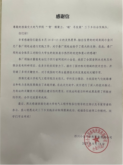 “最大的感觉还是震撼,实际的生产厂区与我的预想完全不同,设备完备且先进,自动化程度极高,工作人员专业素养也十分过硬”,2022级博士研究生李明明感慨到,“在这里能感受到科研成果的落地转化,最终促进人类社会发展”。据悉,春厂坝抽水蓄能电站与木坡、杨家湾、猛固桥共计141兆瓦梯级水电以及50兆瓦光伏电站形成梯级水光蓄互补联合运行发电系统工程,将国家重点研发计划“分布式光伏与梯级小水电互补联合发电技术研究及应用示范”的科研成果转化为造福人类社会的基础设施工程。作为国重项目示范工程,春厂坝电站在运行生产的同时,承担着繁重的科研任务。“每一次测试都是我们的挑战”,电站设备工程师对实践队员说道,“我在这里工作了六年了,完整地参与了春厂坝电站的改造建设,能够参与到国家的重点科研项目,为当地发展做出贡献,这是我目前做过最有意义的事情”。春厂坝电站不仅是科研的高地,更是当地六万百姓的能源保障,让电能像春风一般点亮川西高原的千家万户。