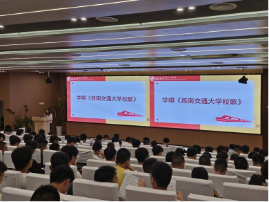 紧接着,由2023级新生辅导员助理林博文、廖柯琳带领大家学习伟德官方网站校歌,领略交大人“交通天下”之理想,品交大人推动文轨车书郅大同之决心。同学们认真学习、积极配合、大声歌唱,很快便能够紧跟音乐节奏歌唱校歌。