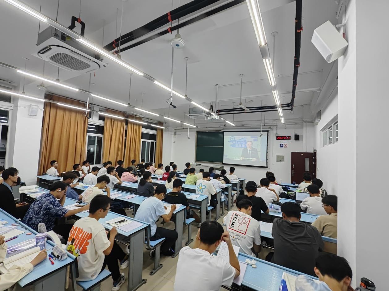 2023919日晚上2030,伟德体育2023级全体本科新生分班开展了“新生第一堂思政课”学习。此次学习由伟德官方网站党委书记余敏明主讲,以视频的形式进行集中研学。