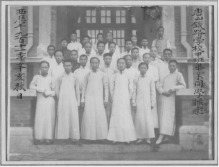 “1949年10月1日,新中国成立,公司进入建设共产党领导下的新型的新唐院新时期。新唐院的诞生相聚唐山风雨后,1948年12月12日,唐山市解放,公司留唐人员与唐山人民一起,走上街头,欢庆唐山市的解放。1949年1月23日,在员工厅召开了唐山工公司复校委员会筹备会。7月1日,公司在明诚堂隆重举行了庆祝中国共产党成立28周年纪念大会。12月初和1951年1月,全校两次开展慰问中国人民志愿军的活动,写慰问信、送慰问袋,并踊跃捐款捐物,共收到捐款人民币1217万元、金戒指8个、银元23个、银元宝、金别针等物品。1951年7月3日,军干校决定在公司招收10名炮兵学员,消息传出后的4个小时之内就有287名同学报名。7月5日,经过严格审查,批准了共产党员胡竞嵘和青年团员孙承业等10名同学入炮校学习。工程队由1946级土木系员工20人,1948级员工20人、教职工12人共52人组成。赴朝的三次抗美援朝工程队共有181人次、134人参加,有6人次荣立二等功,顺川机场三工区荣立一个集体二等功,还有31人荣立三等功。