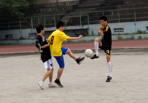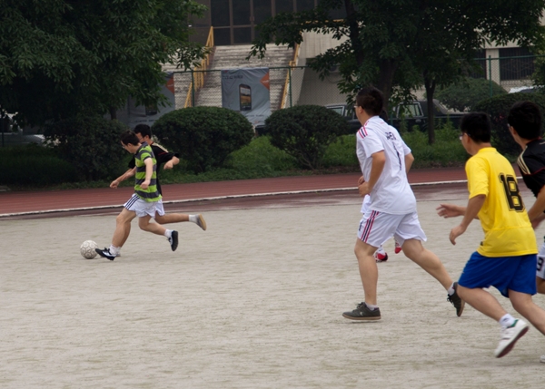 为了丰富研究生的业余生活,锻炼身心素质,进一步促进实验室之间的相互交流,6月13日上午,国家轨道交通电气化与自动化工程中心内部进行了一场足球友谊赛。本场比赛参赛的两支队伍分别是电力信息研究室和列车网络研究室组成的电信队(以下简称电信队),以及智能监控与新能源应用研究室队(以下简称新能源队)。经过一个多小时的鏖战,电信队以2:1战胜新能源队。
