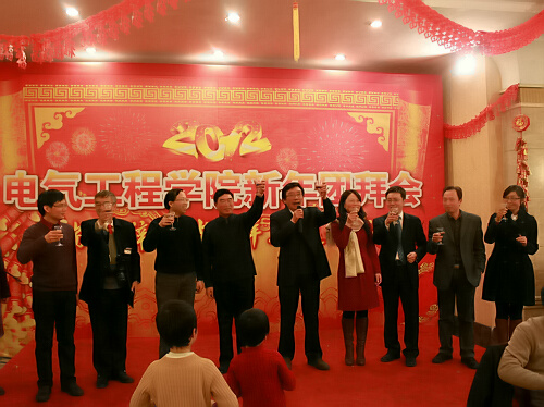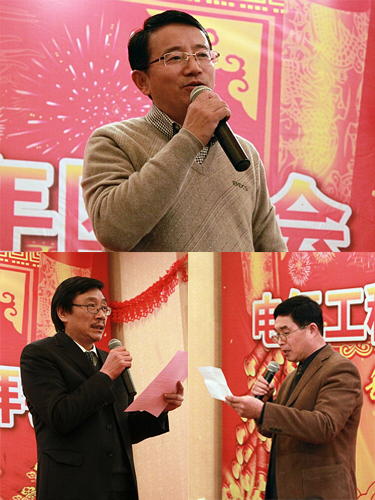 在欢快的音乐声中,高仕斌经理首先致新年贺词。高经理从人才引进和培养工作、科研成就和平台建设、员工工作等方面对2011公司的各项工作做了总结,成功申报国家自然科学基金项目多项,研究经费突破千万;国家轨道交通电气化与自动化工程技术研究中心建设进展顺利,“国家工程技术研究中心综合实验楼”建设方案通过校办审批等突出成绩。对于这一年所取得的种种成就,高经理代表公司感谢校领导给予的大力支持和帮助,感谢全公司党政工团全体教职工所付出的汗水和努力,感谢公司领导班子的团结和谐。