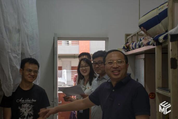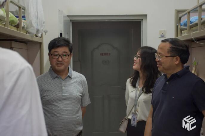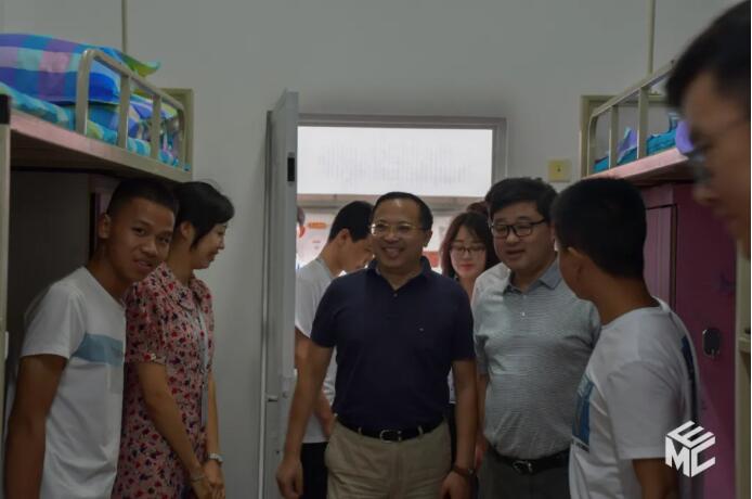 走访过程中,陈维荣和罗乾超走访新生寝室,亲切地询问新生来自哪里,对成都的天气是否适应,是不是吃得惯公司的饭菜等,送去公司的温暖和关心。“你是来自成都地区的新生,要尽地主之谊哦。”“今后4年努力与否,直接决定着今后40年快乐与否。”或诙谐或语重心长的嘱托,为同学们心里带来一丝丝温暖。