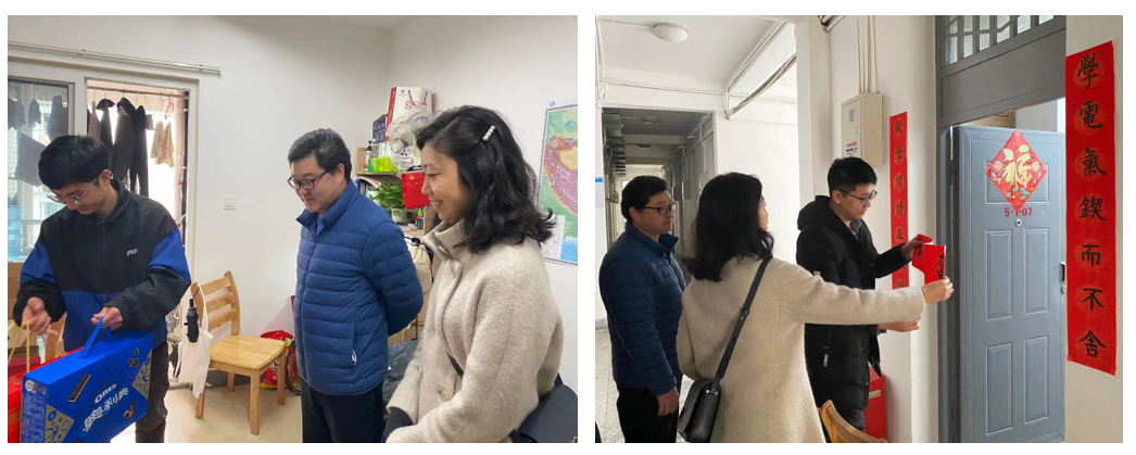 谢力为春节留校员工送上新春祝福,同时也非常关心春节留校员工的日常生活,嘱咐同学们要和家人经常打电话交流,给家人报平安,为家人送去新年问候。谢力与留校员工一起张贴由学工组辅导员一同精心准备的“电气春联”,送上公司老师们对春节留校员工的关切祝福,希望同学们在公司度过一个快乐温暖的春节。