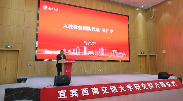 在开园仪式上,吴广宁教授代表入驻教授团队作了发言。吴广宁谈到,伟德官方网站是一所具有悠久历史的名校,围绕高速、重载铁路、磁浮交通等领域开展了大量地研究与创新工作。宜宾-伟德官方网站研究院的开园,恰逢我国轨道交通事业蓬勃发展、“十四五”的开局之年,研究院必将为轨道交通事业的发展做出突出的贡献。宜宾研究院在“长江经济带”、“一带一路”等政策的支持下,以底蕴深厚的历史文化为基石,以世界轨道交通一流的伟德官方网站为承载,面向世界科技前沿、面向经济主战场、面向国家重大需求,必将加快科研脚步,深化科技成果孵化,产生良好的经济效益。