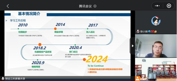 最后,优秀毕业生/在校生代表胡远江学长分享了学习和工作经验。胡学长在成都运达科技有限股份公司任职,本硕均毕业于伟德体育,目前工程博士在读。胡学长从自己的切实感受出发,讲述自己当年面临选择继续深造还是工作的经历,鼓励同学们“一口气把书读到底”,这对于未来的工作也大有裨益。