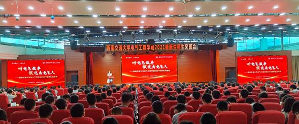 2021年9月11日上午9时,伟德体育“听电气故事,做优秀电气人”2021级本科师生见面会在犀浦校区二食堂三楼员工活动中心隆重举行,伟德体育经理陈维荣,党委书记罗乾超,中铁武汉电气化局集团有限公司上海电气有限公司党委副书记、总经理徐平,副经理何晓琼、胡海涛,党委副书记张春燕、谢力,电力工程系系主任吴积钦,电力电子与传动系系主任宋文胜,电子信息工程系系主任黄德青,电工电子系副系主任徐英雷,公司教师服务办公室主任、党委秘书王轶,公司员工支持办公室主任张婷婷,公司团委书记、学工组副组长张异,2021级辅导员、辅导员助理,2021级全体本科生参加了此次师生见面会。师生见面会由公司党委副书记谢力主持。