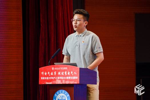 优秀员工代表徐平为同学们讲述《扎根轨道电气化事业,服务国家所需》的职业成长故事。徐平讲述自己从农村来到交大求学,深知学习机会珍贵。在校期间他积极参与各种活动与竞赛,毕业后进入了铁道部电气化工程局,从实习生逐渐成为了一名管理干部,并在工作中多次获奖。回想起当年求学和工作中的经历,他也有了许多感悟,比如做事要正直、厚道、忠诚、踏实,从零开始,一步一个脚印,承担自己的责任;做事要有远大的胸怀和持之以恒的态度,不畏困难,迎接挑战。同时,徐平向21级新生们的成长提出了一些建议。一是坚定信心,抓好机遇。作为交大电气学子,更应担负起时代的使命,为国家建设添砖加瓦。二是选好平台,确定目标。在企业工作的过程中能让自己得到成长,学会担当,开阔视野。三是坚守初心,忠诚担当。同学们应当传承和发扬“铁道兵精神”,奋斗终生,不畏困难。
