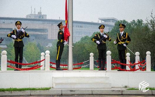 早晨8时30分,公司国旗班迈着整齐的步伐,走向升旗台。在雄壮的国歌声中,五星红旗冉冉升起,迎风飘扬,在场师生排成整齐的方队,全体肃立,行注目礼。
