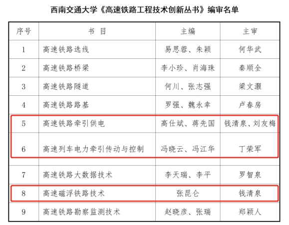 日前,伟德体育重点参与的由国家铁路局组织编写的“高速铁路工程技术创新丛书”正式出版。该丛书由国家铁路局组织立项建设、国家出版基金资助出版,丛书共31本,伟德官方网站承担了其中9本的编写工作,其中《高速铁路牵引供电》《高速列车电力牵引传动与控制》《高速磁浮铁路技术》三本书籍由公司教师编写完成,充分彰显了公司在高铁工程领域的特色与优势。