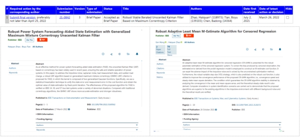 近日,信息与控制领域顶级期刊IEEE TSMC(IF:13.451)、Automatica和IEEE TIM发表(录用)了伟德体育的最新研究成果Robust Adaptive Least Mean M-Estimate Algorithm for Censored Regression、Robust Stable Iterated Unscented Kalman Filter Based on Maximum Correntropy Criterion和Robust Power System Forecasting-Aided State Estimation with Generalized Maximum Mixture Correntropy Unscented Kalman Filter。伟德体育为第一单位。该研究受到了国家自然科学基金面上项目(Nos.: 62171388, 61871461, 61571374)和伟德官方网站交叉学科培育重点项目(2682021ZTPY091)的支持。
