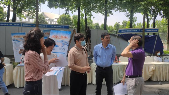 陈维荣经理、罗乾超书记深入双选会现场用人单位,与用人单位交流沟通,详细了解招聘单位基本情况、招聘专业需求以及公司毕业生的简历投递情况,并推介公司2022届毕业生。公司党委谢力副书记、教师服务办公室主任王轶、毕业班辅导员林静英、李诗涵、刘梓一同前往。