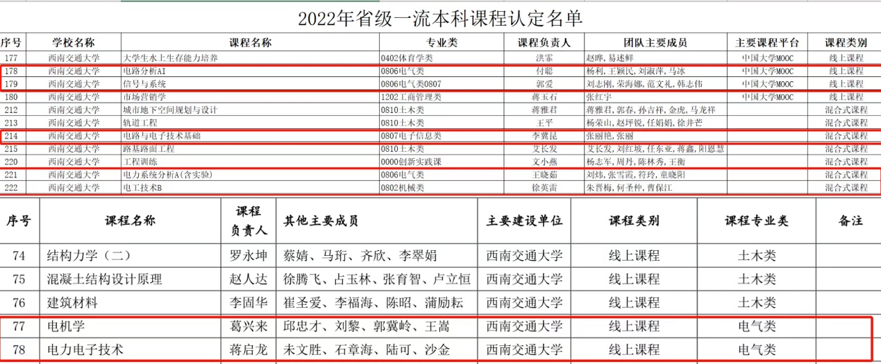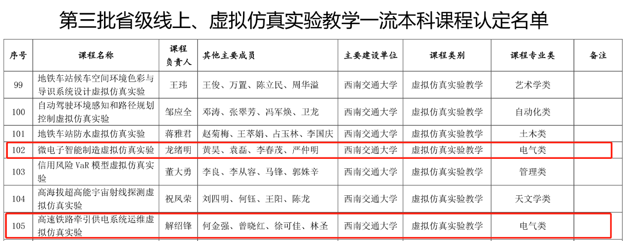 根据四川省教育厅发布的《四川省教育厅关于2022年省级一流本科课程认定结果的公示》和《四川省教育厅关于公布第三批省级线上和虚拟仿真实验教学一流本科课程认定结果的通知》(川教函〔2022〕321号),公司2022年新增9门省级一流课程(含公示),包括线上课程《电机学》、《电力电子技术》、《电路分析AI》、《信号与系统》,混合式课程《电力系统分析A (含实验)》、《电路与电子技术基础》、《电工技术B》,以及虚仿类实验课程《微电子智能制造虚拟仿真实验》和《高速铁路牵引供电系统运维虚拟仿真实验》。