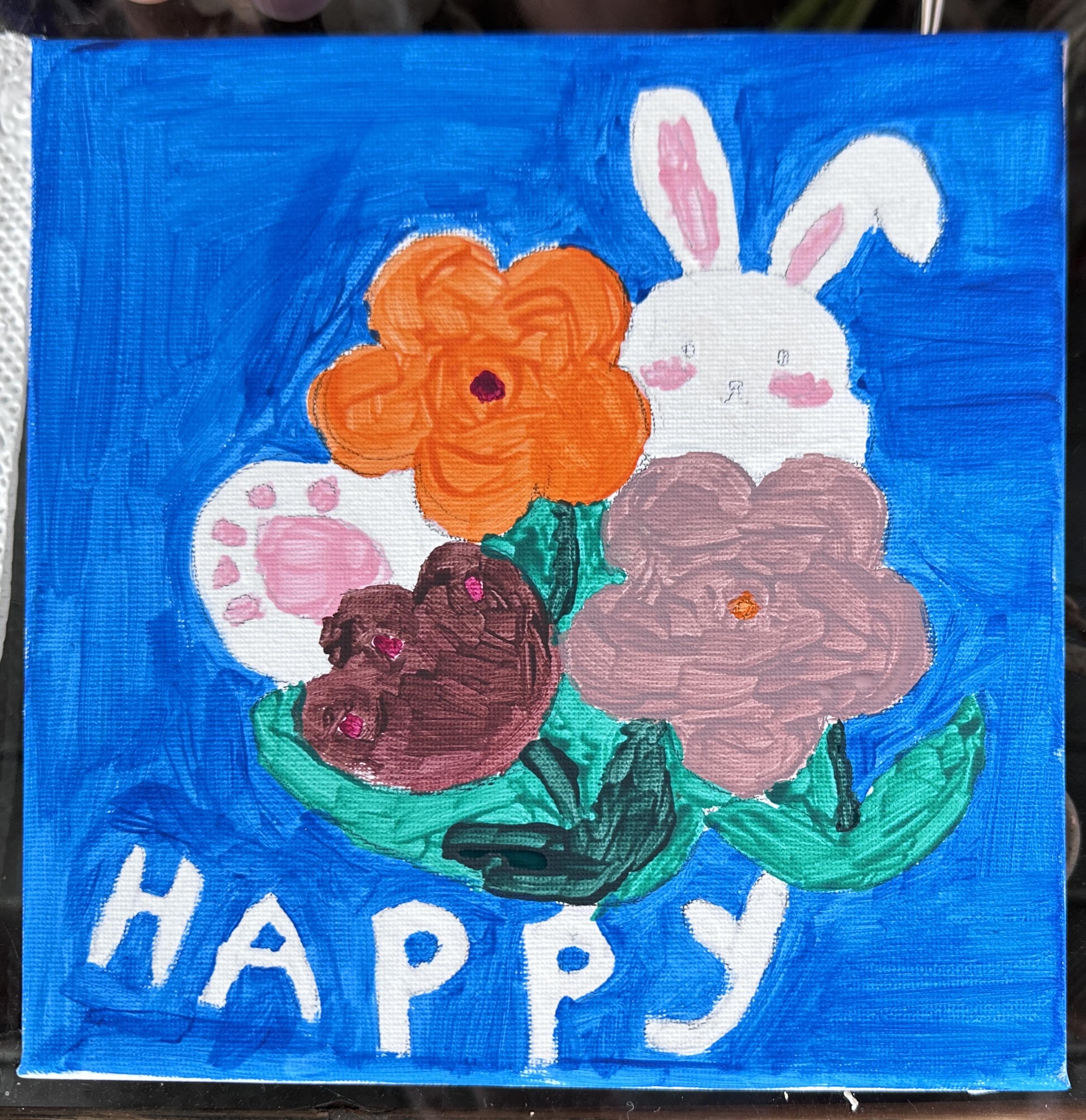 午后,工作人员简单讲解油画的绘制技巧和注意事项,大家拿起画笔在画板上认真地勾勒起来。活泼可爱的小兔子、色彩艳丽的红玫瑰、慵懒可爱的小橘猫……经过大家的努力,一幅幅色彩美丽的油画陆续完成,老师们成就感满满。