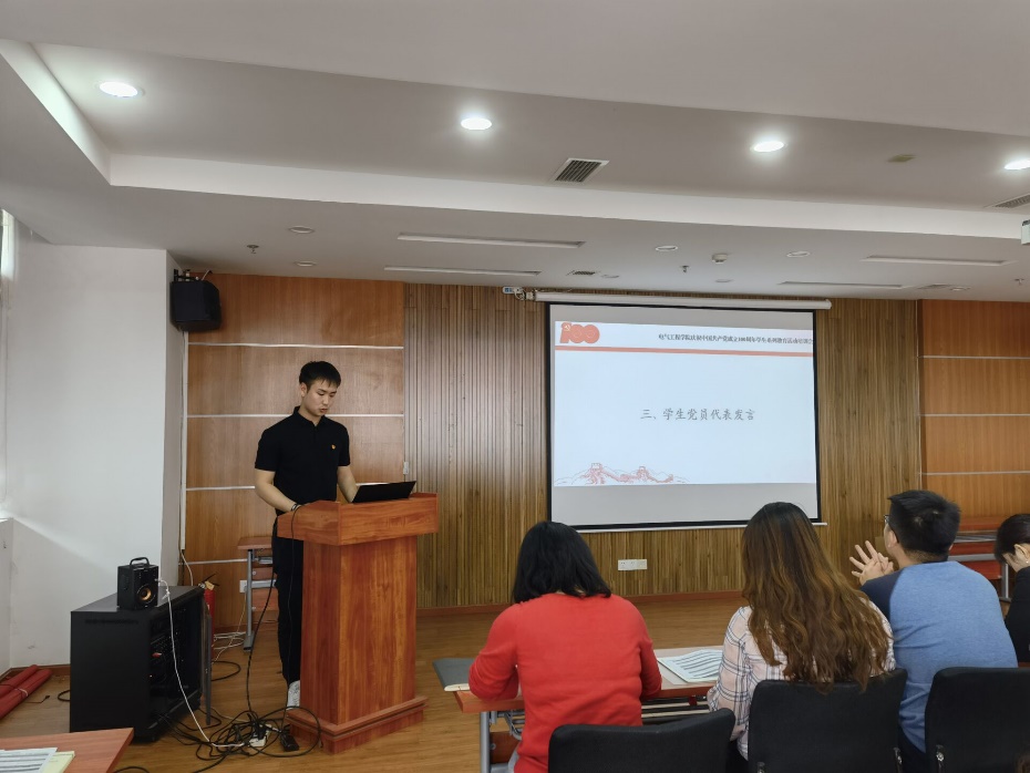 培训会最后,员工党员代表、电气硕士2019级第一党支部书记何宗伦发言。何宗伦表示,开展党史学习教育,是对全体党员的一次深刻思想洗礼,我们要坚决做到学党史、强信念、跟党走,扎实开展公司党委布置的各项特色学习活动,将党史学习与日常学习、科研相结合,激励同学们以昂扬姿态奋进前行,以优异成绩庆祝建党100周年。