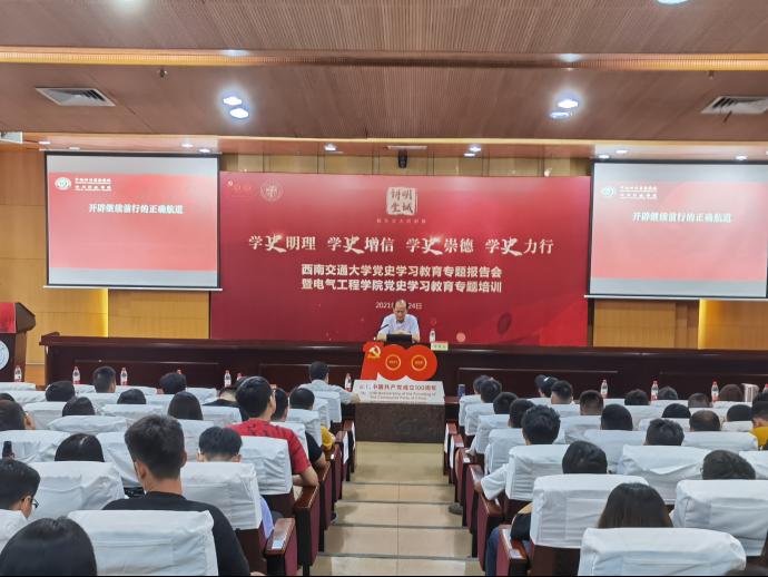 2021年6月24日下午,伟德官方网站党史学习教育专题报告会暨伟德体育党史学习教育专题培训在图书馆二号报告厅举行,公司党委书记罗乾超带领中心组成员、师生党员代表参加培训。报告会主讲人为中共四川省委党校曾繁亮教授,罗乾超主持培训会。