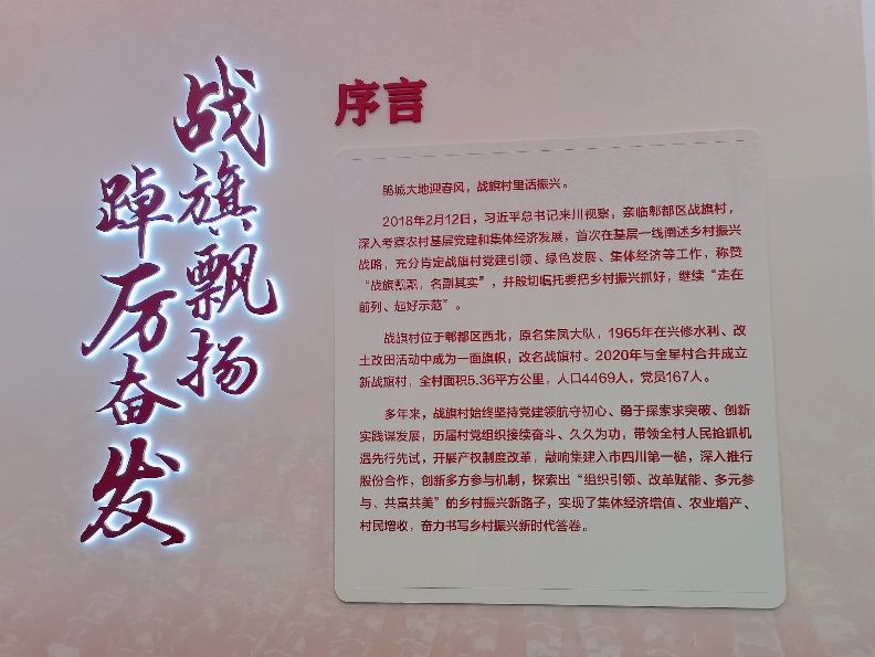 参观完乡村十八坊之后,支部同志们又一起前往了村史馆和“精彩战旗”特色产业在线服务大厅。如果村史馆代表历史,那么特色产业在线服务大厅就代表着现在与未来。通过最直观、最强烈的影像参观,支部成员深刻体会了乡村振兴给基层一线带来的巨大变化。在场党员感叹历史带来的使命感与厚重感的同时,也愈发感受到新时代赋予的责任与重担。中华民族伟大复兴这一历史使命,需要我们每一个人奋发努力、积极作为的不断接力。