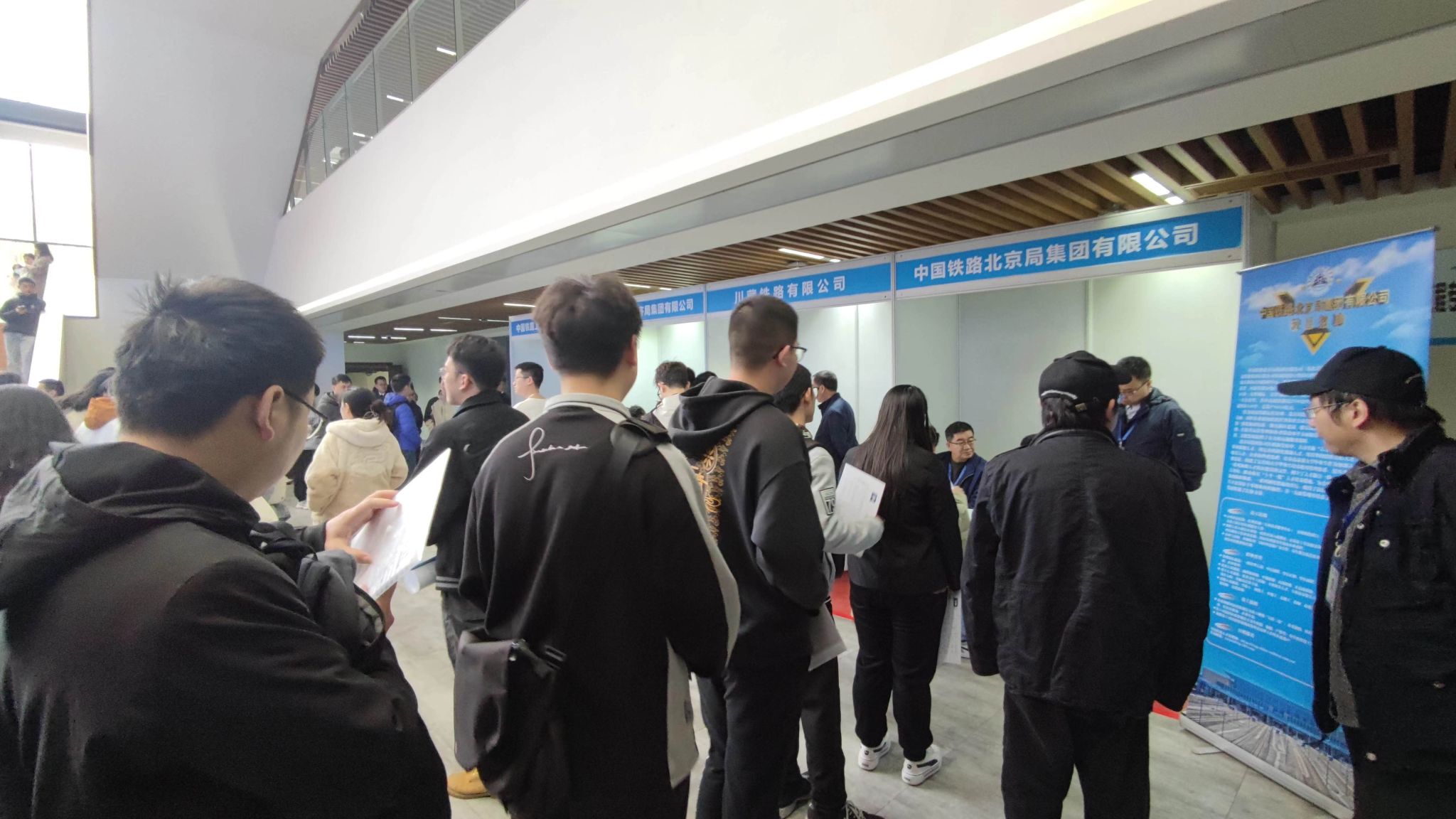 12月2日-3日,中国铁路集团有限公司在公司组织召开招生宣讲会。在伟德官方网站犀浦校区3号教学楼进行简历的收取和面试。各个铁路局的到来也使同学们热情高涨,十分踊跃参加到招聘会中。伟德体育本科2020级第一党支部和第五党支部的党员同志在辅导员老师的组织下也提前到达现场,对现场的秩序进行组织,引导各位同学前往自己意向的铁路局进行简历收取和面试。