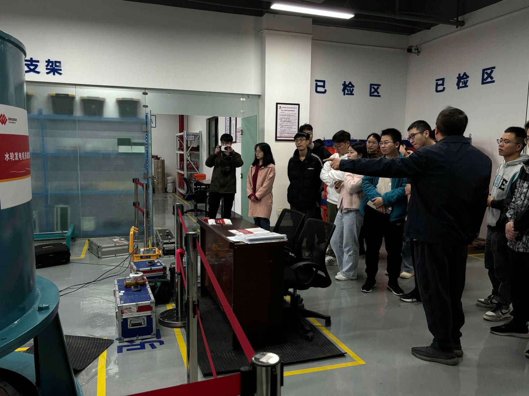 国家能源集团科学技术研究院有限公司成都分公司副总经理白冬波对师生一行的到来表示欢迎,并结合习近平总书记考察国家能源集团时的重要指示批示精神,介绍了国家能源集团、国能科研院等相关发展沿革。随后,在公司副总经理白冬波、电自所主任高宗宝的带领下,师生代表参观了国家能源集团电科院成都分公司实验室、江建明劳模和工匠人才创新工作室以及办公基地。